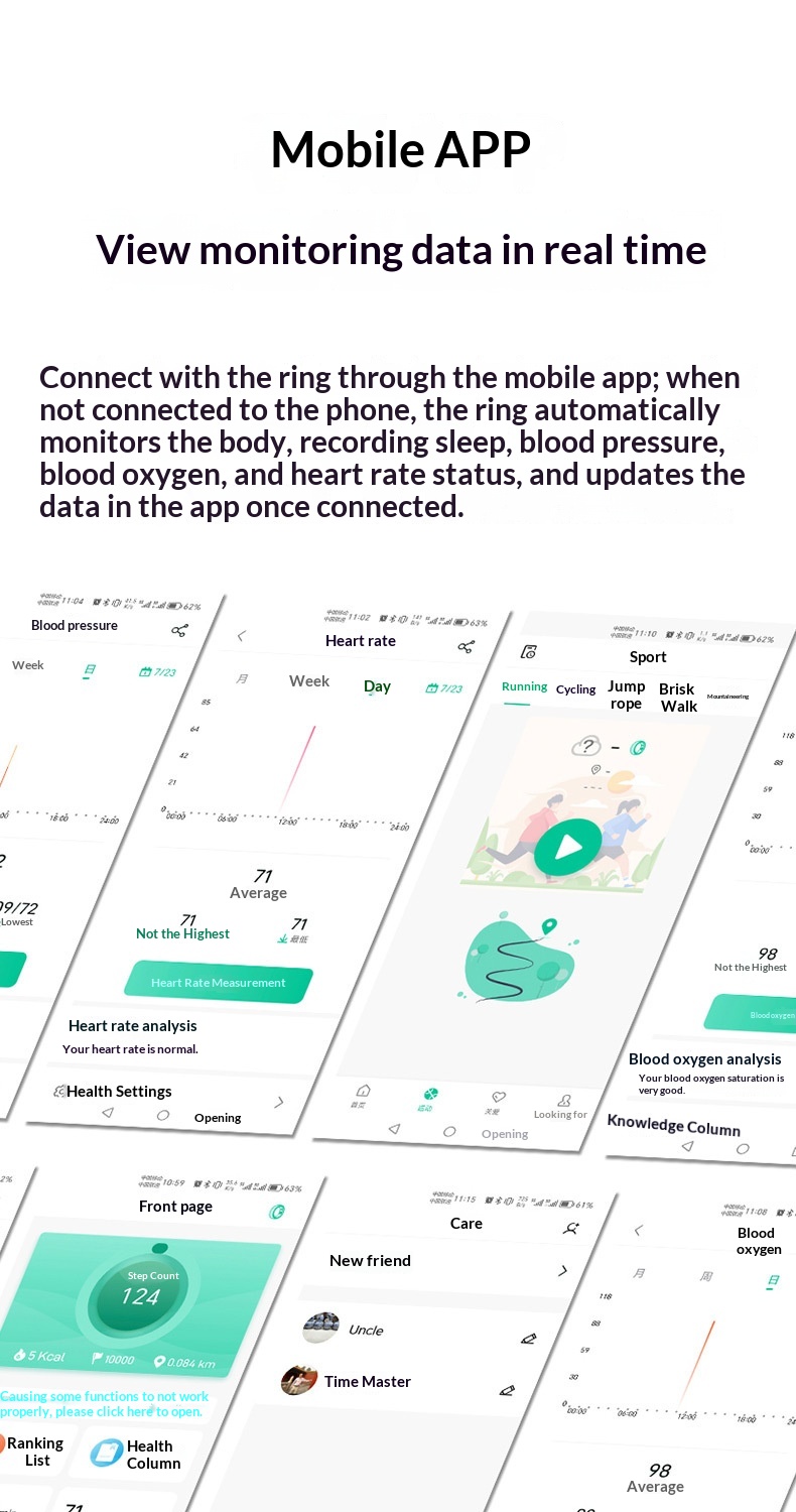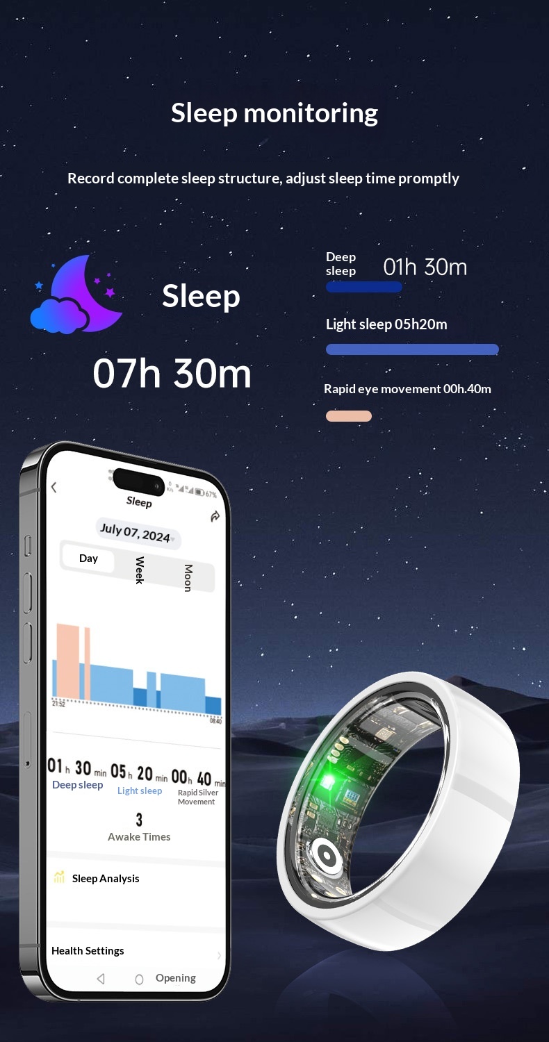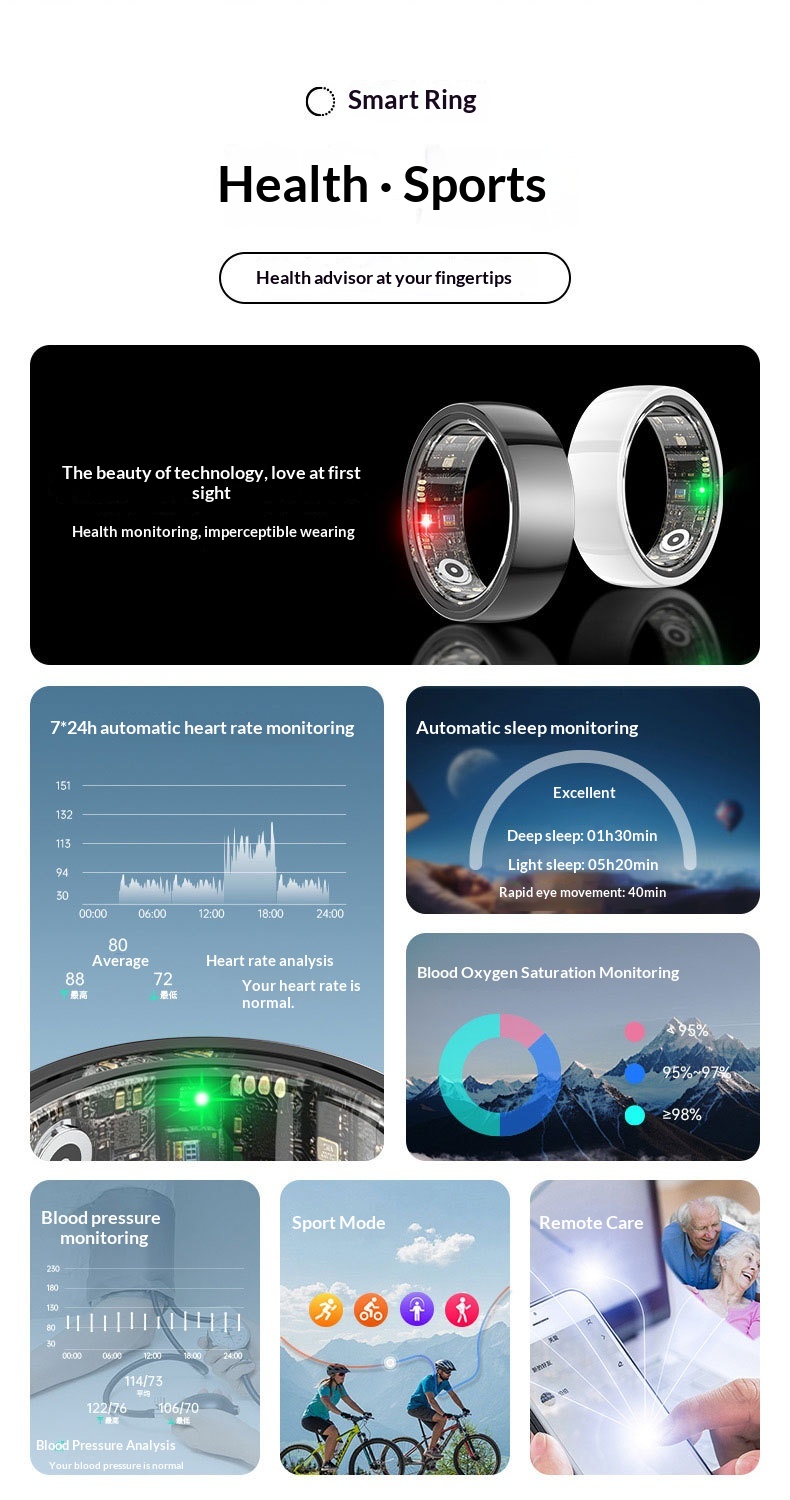 Remote Care Ring For Monitoring Sleep Heart Rate And Blood Oxygen Levels