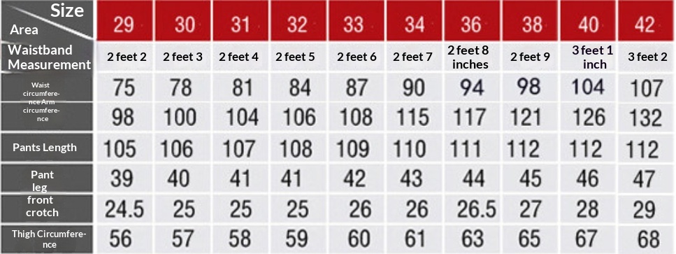 Sizes: 29, 30, 31, 32, 33, 34, 36, 38, 40, 42